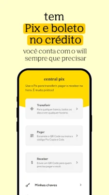 Will simplifica sua vida financeira. Uma conta digital completa com cartão de crédito, cartões virtuais, Pix, recargas e investimentos. Segurança garantida para você. Descubra as facilidades de ter tudo em um só lugar.
