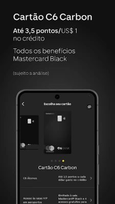 Encontre o cartão ideal para o seu estilo de vida no C6 Bank, com opções que oferecem vantagens exclusivas. O Cartão C6 Carbon, por exemplo, eleva sua experiência com até 3,5 pontos por dólar, cashback de até 1,7%, acesso ilimitado à sala VIP Mastercard Black em Guarulhos, além de 4 acessos anuais a outras salas VIP e C6 Tag sem mensalidade para até 4 veículos. Já o C6 Black oferece até 2,5 pontos por dólar e 6 meses de anuidade grátis, enquanto o C6 Platinum se destaca pela anuidade zero e pontos no crédito e débito. Todos se integram perfeitamente às carteiras digitais e ao Google Pix, permitindo transferências rápidas e seguras diretamente da sua Carteira do Google, sem a necessidade de abrir o aplicativo do C6 Bank.