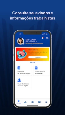 Pensando no seu planejamento financeiro, A Carteira de Trabalho Digital vai além do emprego. Realize simulações precisas e solicite propostas de empréstimos diretamente pelo app, com total transparência e segurança. Mantenha-se atualizado sobre o andamento do seu empréstimo consignado, o Crédito do Trabalhador, com acompanhamento detalhado e intuitivo, proporcionando organização e tranquilidade para suas finanças.