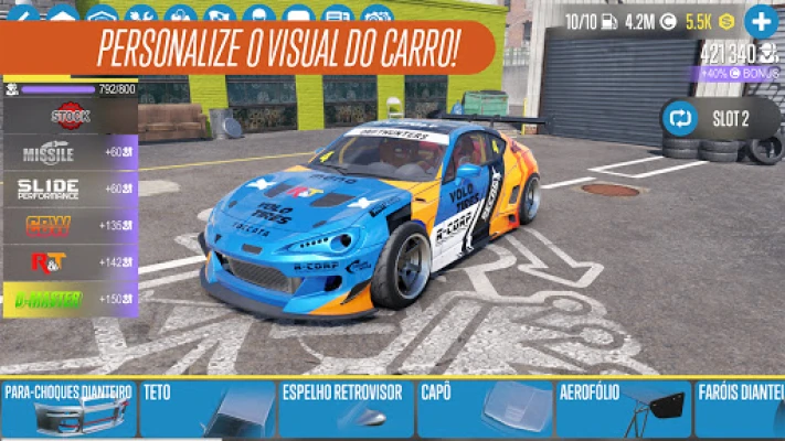 A personalização é a alma da sua máquina em CarX Drift Racing 2. Da estética à performance, cada detalhe está ao seu alcance. Troque espelhos, luzes e para-choques, crie designs únicos com kits de carroçaria e jantes, e liberte a sua criatividade com vinis ilimitados. Mas a verdadeira potência está sob o capô: ajuste a suspensão, a pressão dos pneus, o motor e a caixa de velocidades, garantindo que o seu veículo se alinha perfeitamente com o seu estilo de drifting. E para levar as suas habilidades ao próximo nível, junte-se aos novos Salões Online, derrape em tempo real com amigos, ganhe recompensas e domine campeonatos globais. Forme ou integre um Clube de Corrida para partilhar estratégias e provar quem é o verdadeiro mestre da derrapagem.