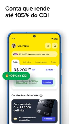 Mercado Pago: seu banco digital completo. Faça seu dinheiro render até 105% do CDI, tenha cartão de crédito sem anuidade e pague com Pix. Conte com um assistente de IA, linha de crédito e compre e venda criptomoedas, tudo com segurança.