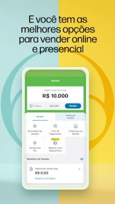 Empreendedores encontram no PagBank um parceiro estratégico. A conta digital para PJ é grátis e 100% digital, garantindo rendimentos atrativos para o capital da sua empresa, além de Pix e TEDs ilimitados, gestão de pagamentos e impostos, e um cartão da conta gratuito. E para impulsionar suas vendas, conte com a tradição e inovação das maquininhas PagBank, como a Minizinha e a Moderninha, líderes desde 2006. Desfrute de equipamentos sem aluguel, com 5 anos de garantia, frete grátis e a versatilidade de aceitar todas as bandeiras, Pix e QR Code, com recebimento imediato. Para completar, o PagBank ainda oferece recargas de serviços diversos – de celular a jogos e transporte – com a praticidade de agendamento e 2% de cashback.