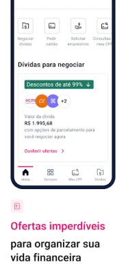 Descubra o app Serasa, seu parceiro para uma vida financeira mais tranquila. Consulte seu CPF grátis, explore diversos serviços e encontre soluções para conseguir crédito com mais facilidade. Tudo pensado para você!