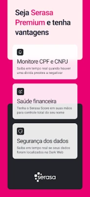 Desvende o universo das suas finanças com Serasa, o seu copiloto essencial para uma vida financeira mais tranquila e informada. Na palma da sua mão, você tem acesso a ferramentas poderosas para gerenciar sua saúde de crédito, proteger seus dados e simplificar pagamentos, tudo em um só lugar. A Serasa dedica-se a capacitar cada brasileiro com clareza e controle sobre seu futuro financeiro, transformando a complexidade em simplicidade.
